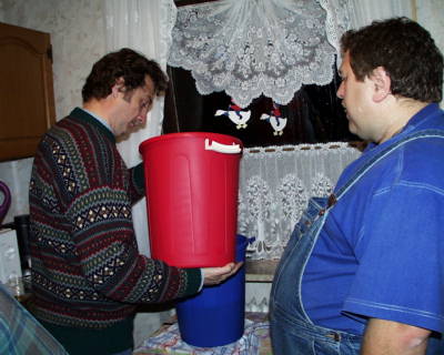 Deshalb wird das Bier mehrmals von einem in den andern Behälter geschüttet. |